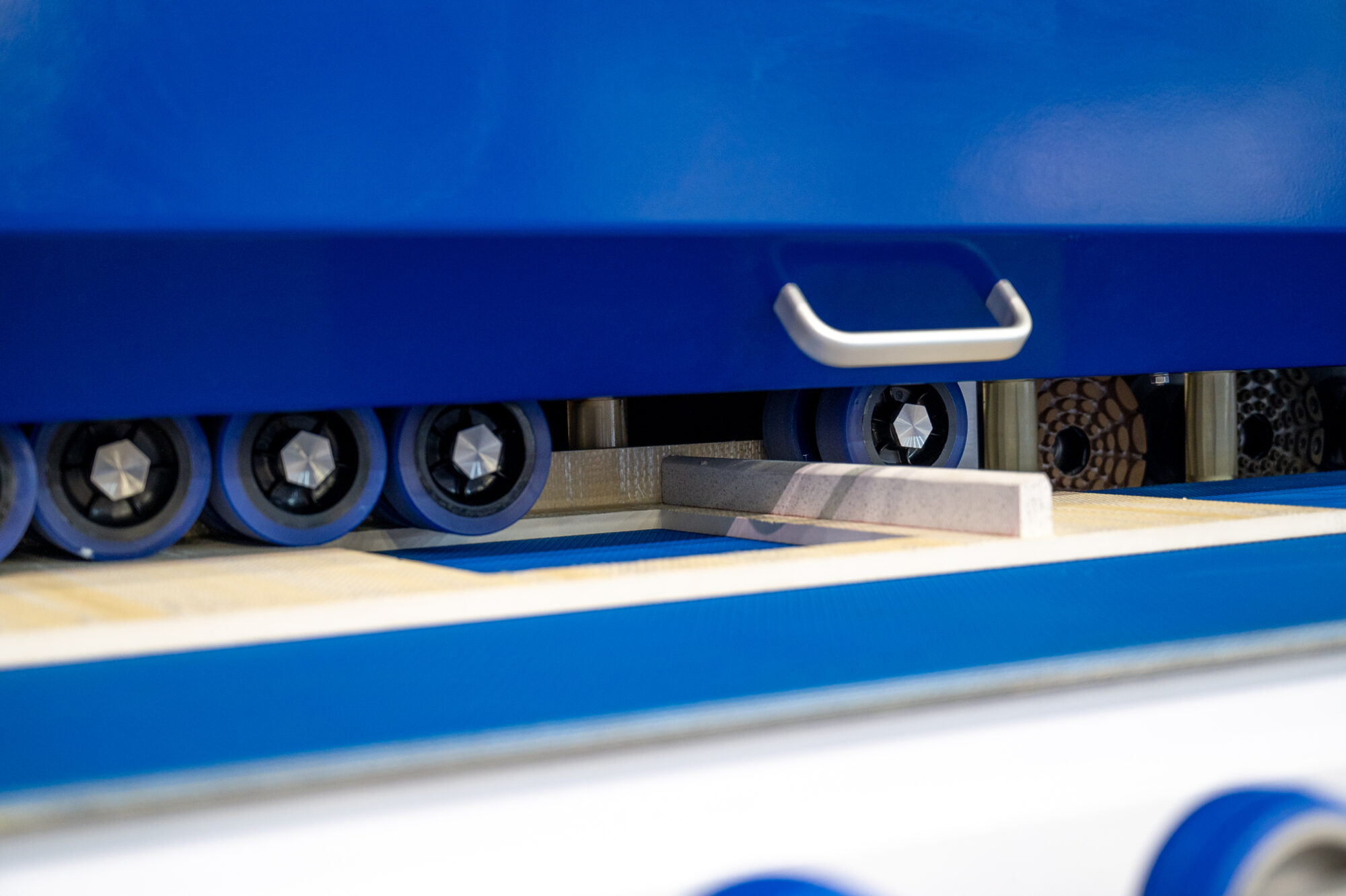 DONATONI ES40 es la nueva pulidora de cantos planos, con un banco de 3840 mm, que dispone de posicionamiento automático de las distintas unidades de procesamiento en función del tipo de material, el grosor y el procesamiento requeridos. El grosor máximo de trabajo es de 50 mm y el número de dispositivos configurables es 11.